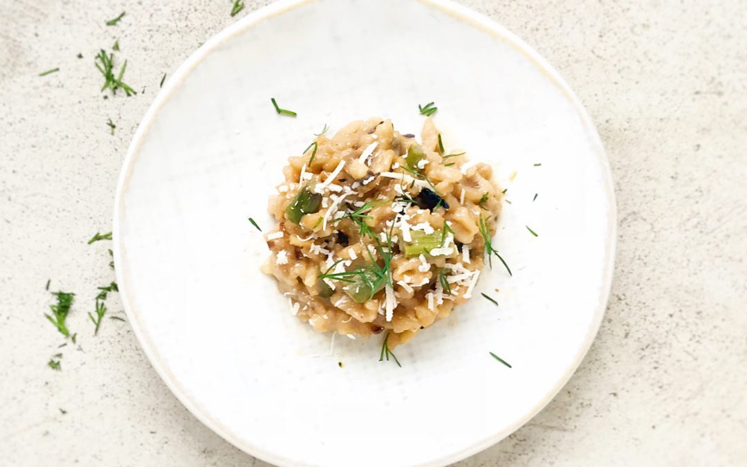 El precio de la comida incluye entrantes a compartir con pan sin gluten, ensalada, plato principal (risotto de setas y quesos aragoneses), postre, bebida (agua, cerveza, cerveza sin alcohol, refresco o vino) y café.